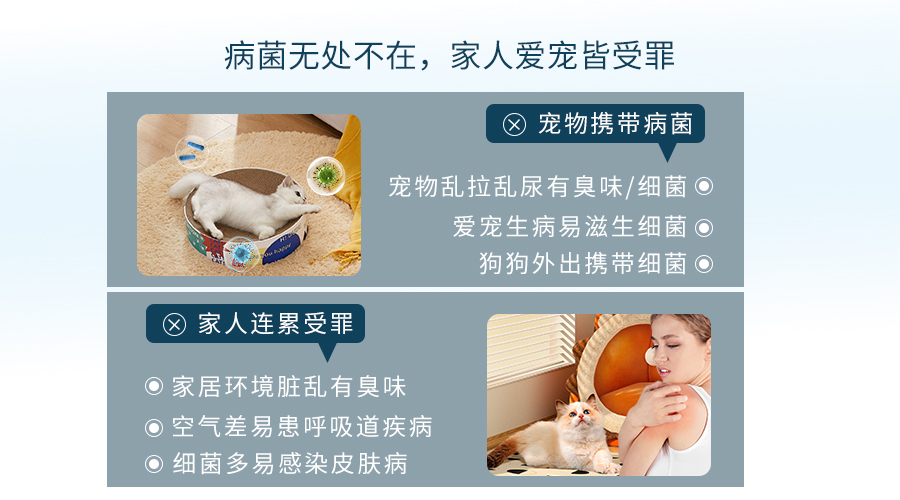 廣磊凈化器給你煥新寵物環境,有效吸附寵物浮毛,分解去除寵物異味分子,同時可以消滅大于99.9%的細菌和病毒。